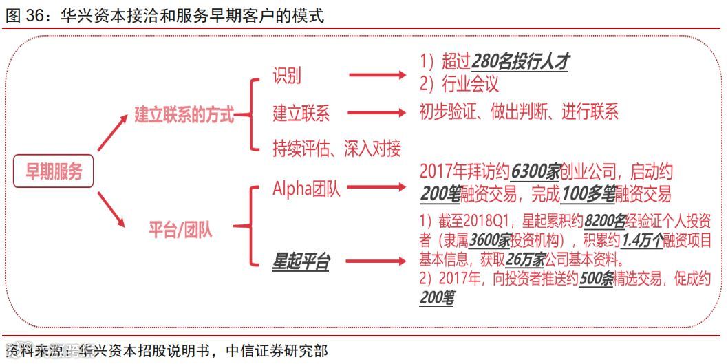 邵子钦团队表示,投行从项目狩猎模式转为伴随企业成长的畜牧模式,华兴资本致力在早期遴选出优质的企业家及初创企业,并与他们建立紧密的联系,从而便于在企业全生命周期内提供服务, 2017年华兴资本联络过6300家创业公司。
