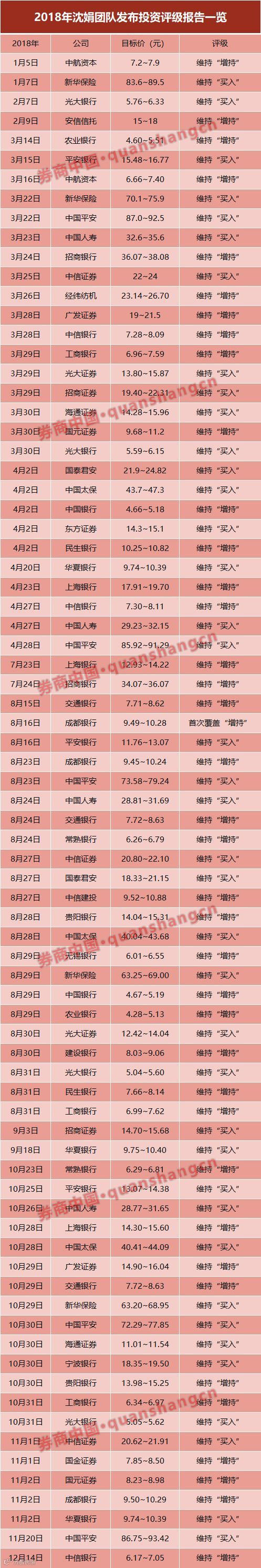 2018年,沈娟团队发布78份投资评级报告,其中买入评级39份,增持评级39份,涉及35家上市公司。
