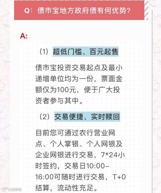 显然,很低投资门槛,起点金额为100元,最小递增单位均为100元面值,相对理财产品、大额存单交易门槛较低,适合个人和中小投资者认购。