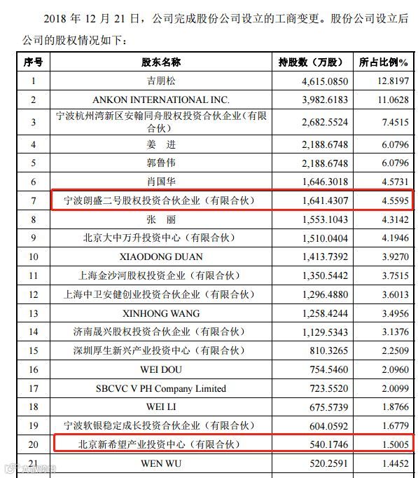 同时,刘永好的新希望集团旗下子公司北京新希望产业投资中心和拉萨经开区新希望投资有限公司合计持有安翰科技2.25%股份比例。