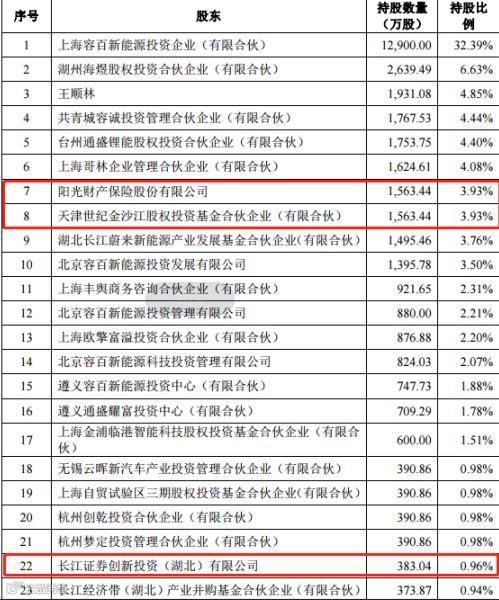 其中,阳光财产保险持有宁波容百3.93%股份,位居第七大股东,知名创投金沙江旗下天津世纪金沙江股权投资基金合伙企业(有限合伙)也持有3.93%股份;而长江证券子公司长江证券创新投资(湖北)有限公司持有0.96%。