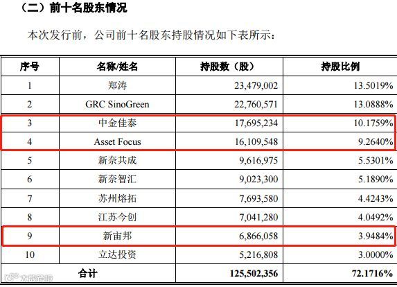 值得注意的是,天奈科技前十大股东还包括中金佳泰、Asset Focus和上市公司新宙邦(300037,SZ),分别持有10.16%、9.26%和3.95%,其中,中金佳泰的大股东为全国社保基金理事会(持股33.2%),而Asset Focus的股东为知名创投机构IDG资本。