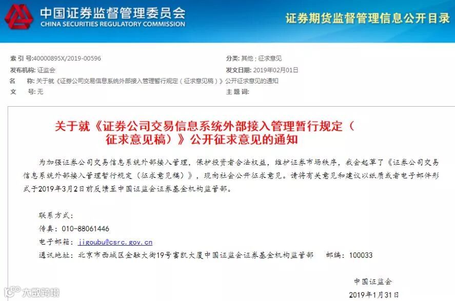 2月1日,证监会发文就《证券公司交易信息系统外部接入管理暂行规定》(下称《规定》)向社会公开征求意见。《规定》对券商交易信息系统外部接入业务相关要点进行了明确,业内人士认为此举有利于提高A股市场流动性,各类量化交易有望迎来春天。