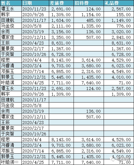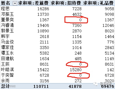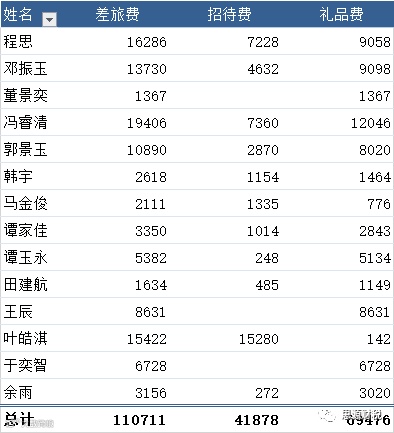 数据源:销售人员报销的差旅费、招待费和礼品费的明细