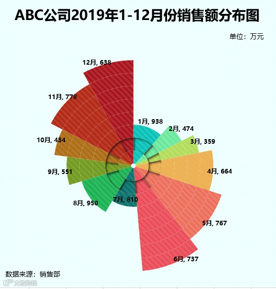 前几天一个同学问我玫瑰图如何制作,今天就给大家呈现Excel如何制作玫瑰图,玫瑰图主要是通过隐藏部分饼图的颜色来实现,从而呈现炫酷的效果。