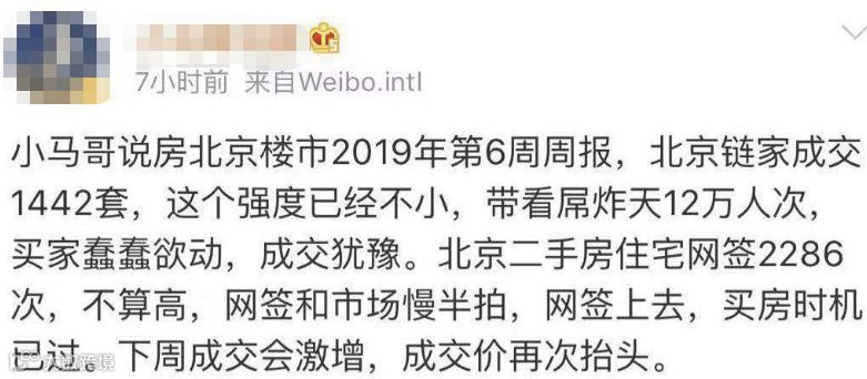 某微博大V表示,2月24日北京链家成交264套,带看39294。周六带看4.43万人次,才成交264套,不得不说中介工作很努力,买家并没有意识到要涨,还在犹豫。