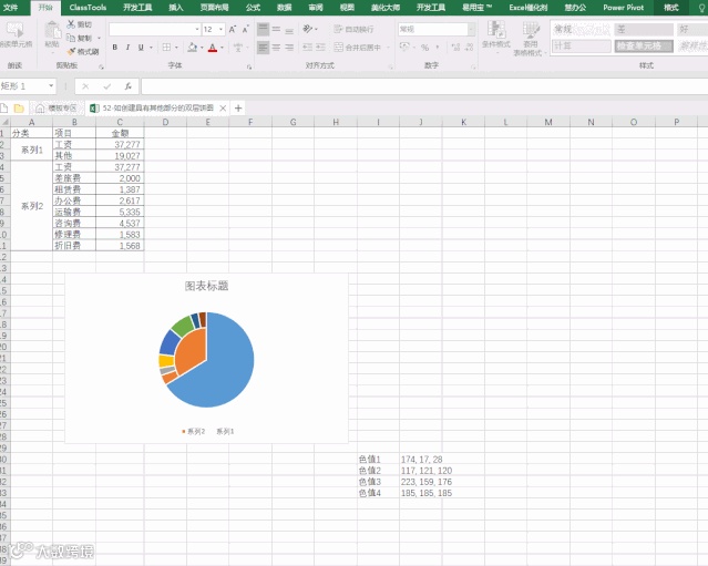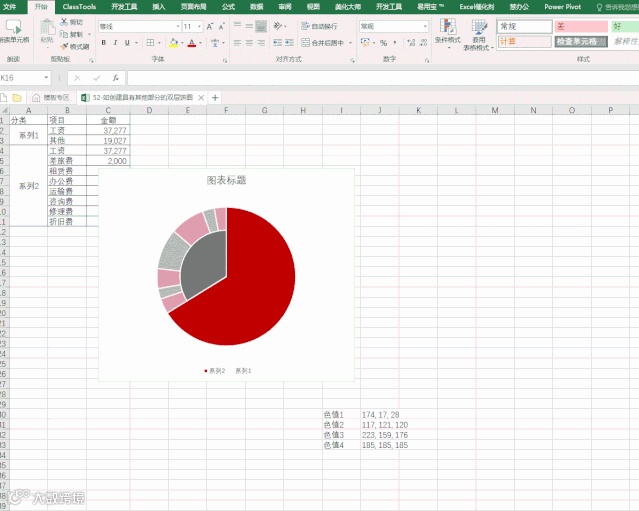 图表制作要求:双层饼图,其他部分的明细在第二层饼图显示
