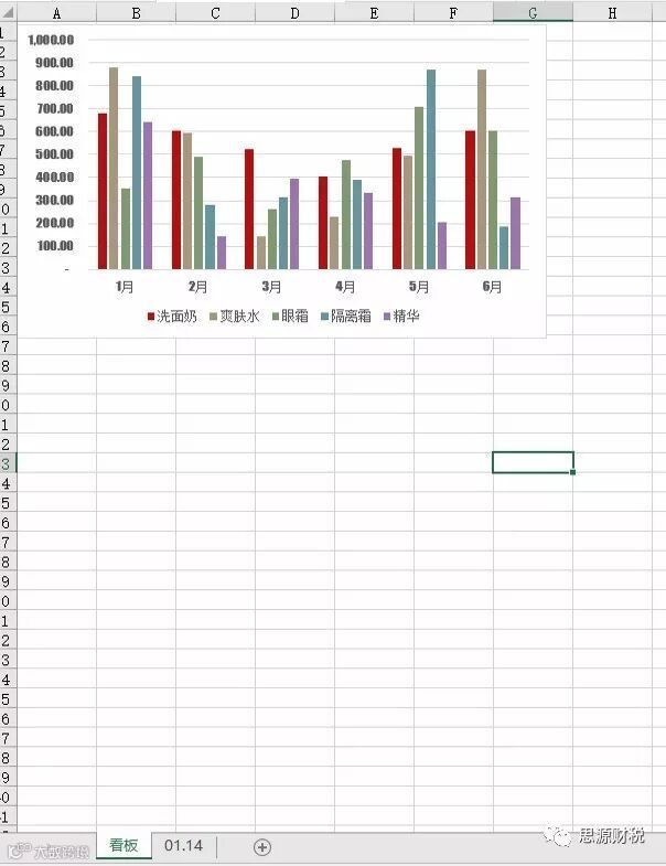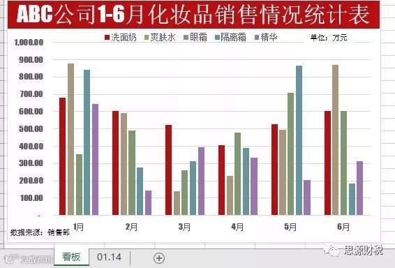 第四步:在看板表中进行图表的编辑,选择洗面奶1-6月份销售数据,完成要求(1),如图1-,6;