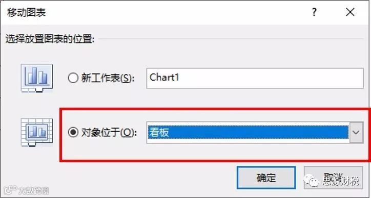第三步:打开移动图表对话框,选择需要移动到的表格:看板,可以将图表移动到另外任意一张图表中,如图1-4和图1-5;