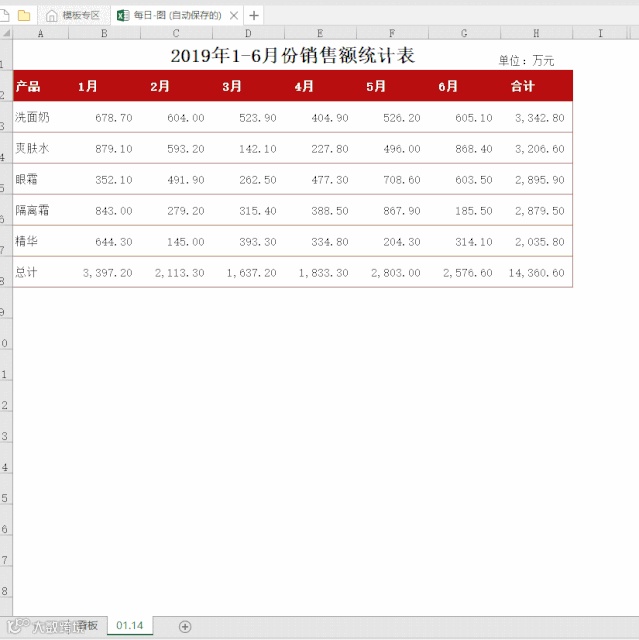 数据源:1-6月份各产品销售额统计表
