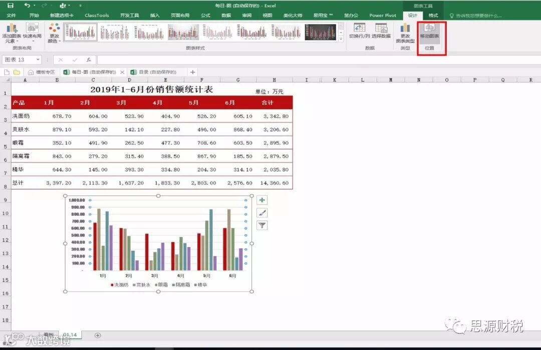第二步:选中图表,工具栏-设计-移动图表,如图1-2;