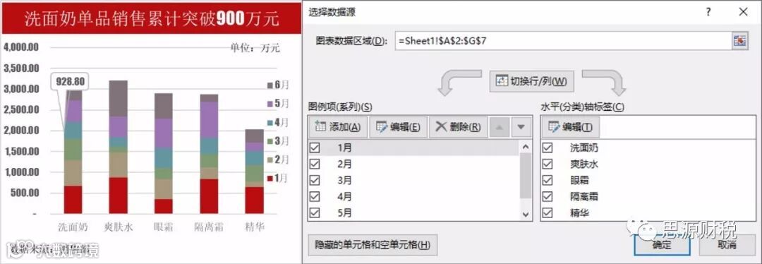数据源:1-6月份各产品销售额统计表