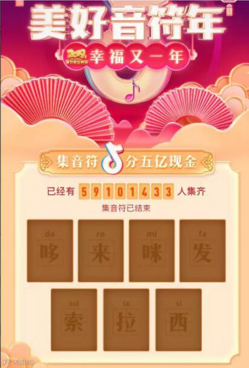 1月28日,抖音宣布上线“美好音符年”活动,凡是集齐“哆、来、咪、发、索、拉、西”七音符的用户皆可参与分享总计5亿元的红包,单个用户最高可获2019元。此外,抖音最新产品多闪也推出“发随拍、分一亿”活动,使用红包道具拍摄发送随拍,就能获得现金红包。