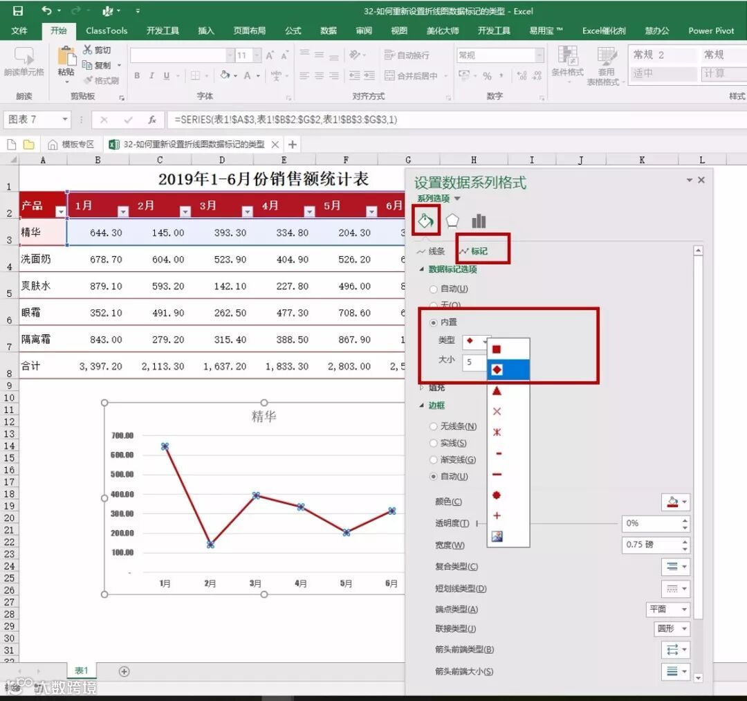 图表制作要求:以圆形重新设置折线图数据标记类型