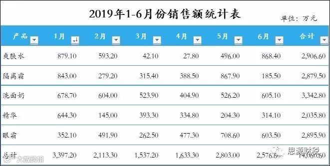 数据源:1-6月份各产品销售额统计表