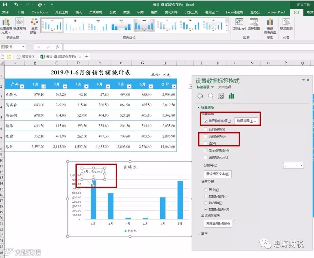 (3)让1月份数据标签引用某一单元格
