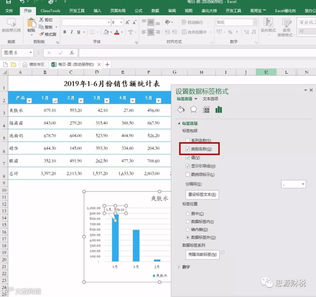 (2)增加1月份数据标签的类别名称
