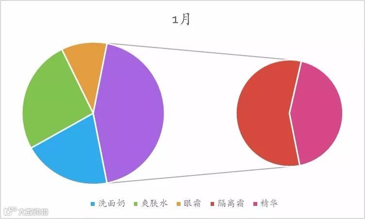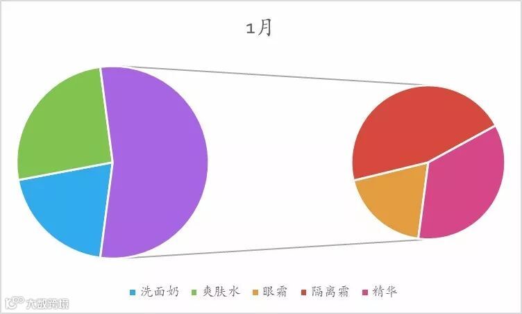 第一步:选择A2:G7,插入-饼图-复合饼图,如图1-1;