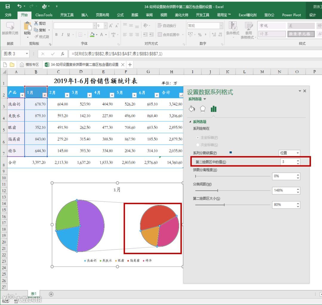 在日常工作中,复合饼图第二扇区包含值通常默认为2,实际工作中可以根据需要进行调整,今天我们就给大家分享如何调整复合饼图第二扇区包含值?