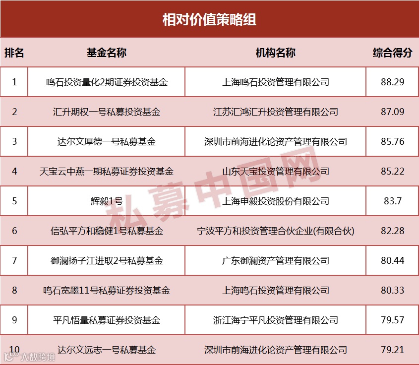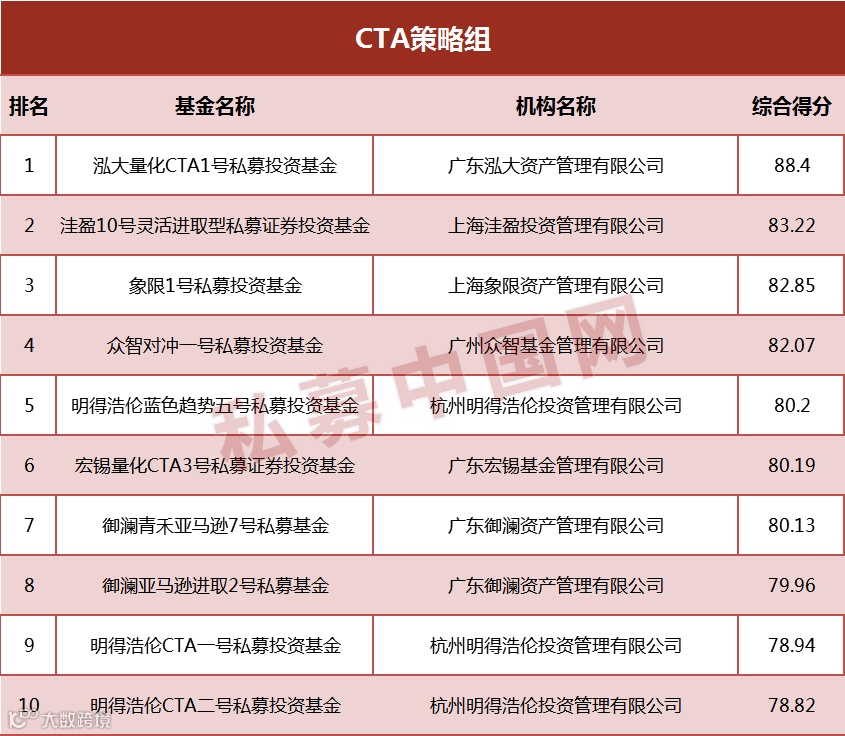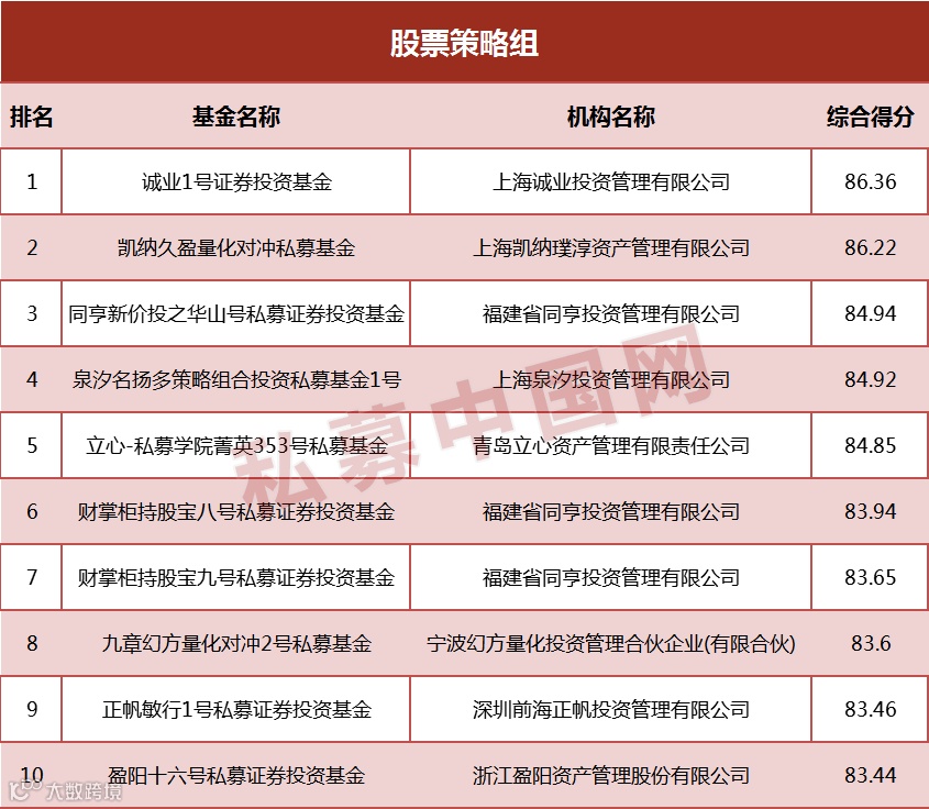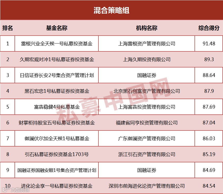 此外,全面考察参赛产品收益和风险指标的首季综合得分排名也已更新,各策略前10名如下: