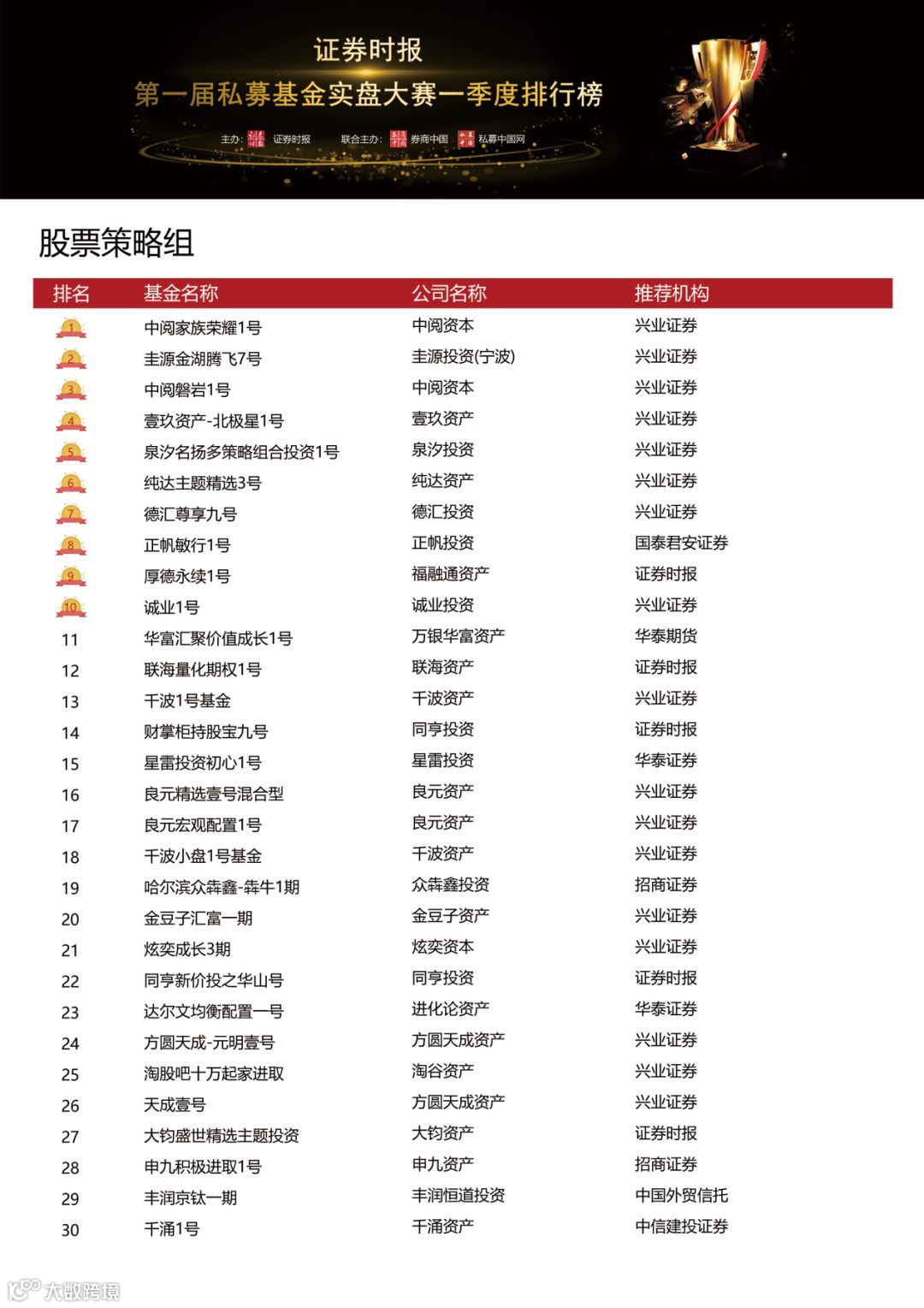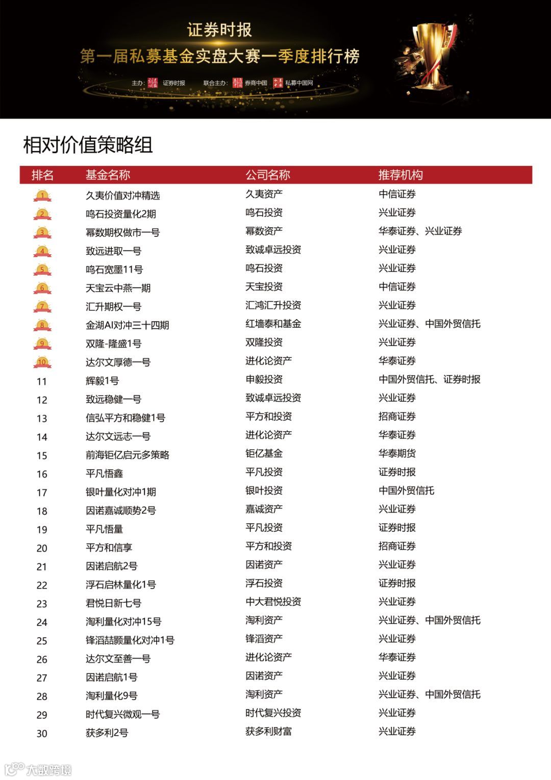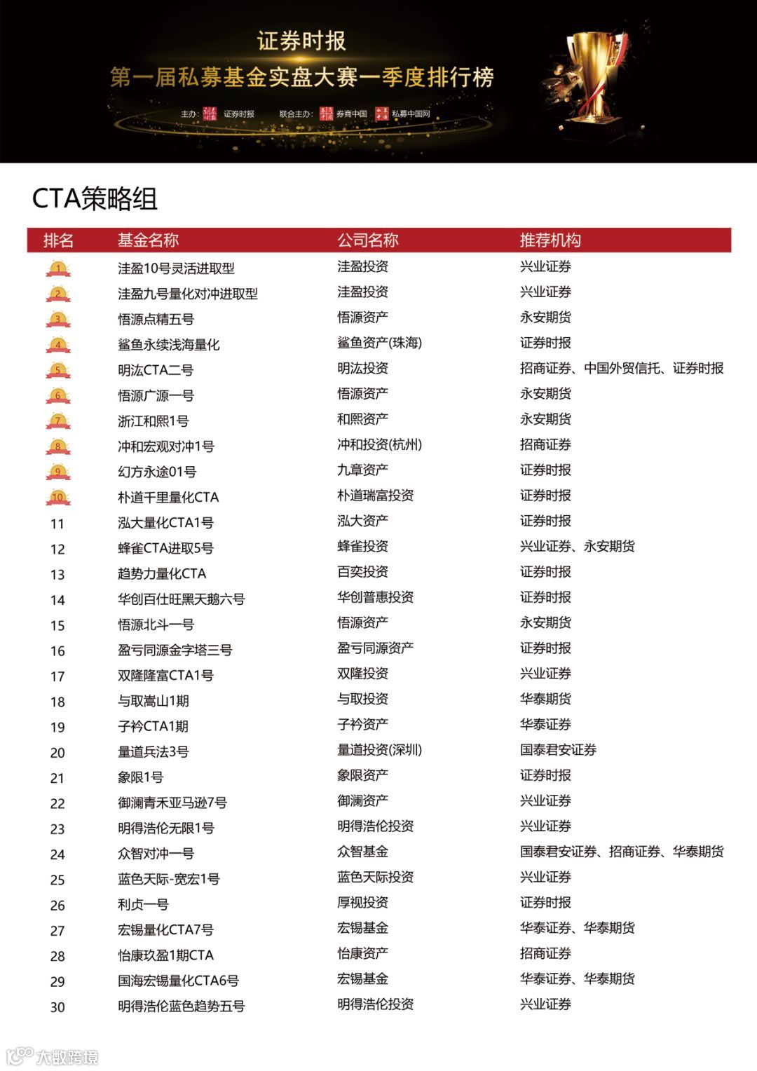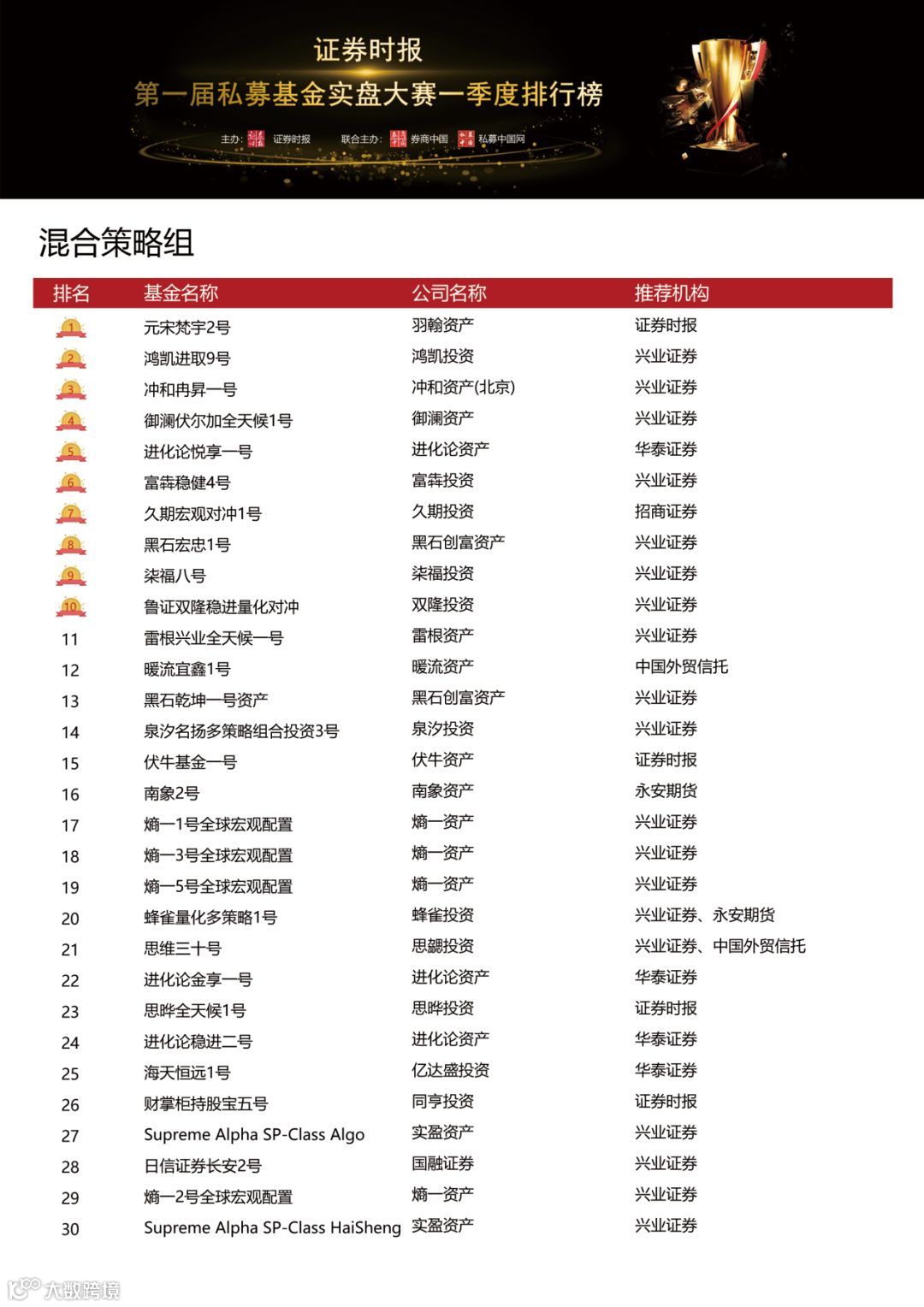 根据大赛规则,季度排行榜将根据参赛产品区间收益率发布各策略组前30名榜单,首季榜单如下: