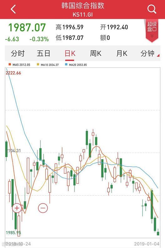韩国综指早盘小幅低开,盘中持续走低,截至券商中国发稿,指数下跌0.33%,创2016年12月6日以来新低。