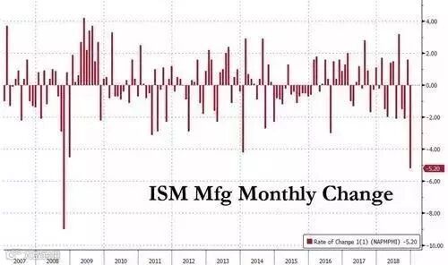 昨夜美国公布的一项数据引发市场担忧:美国12月ISM制造业指数54.1,创2008年10月以来最大降幅,以及2016年11月以来新低。这意味着,美国制造业仍持于扩张区间,但动能正在放缓。