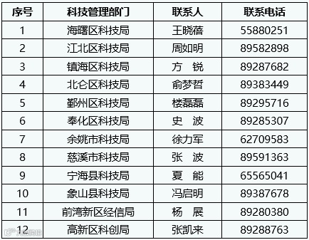 各区(县、市)、开发区科技管理部门联系方式
