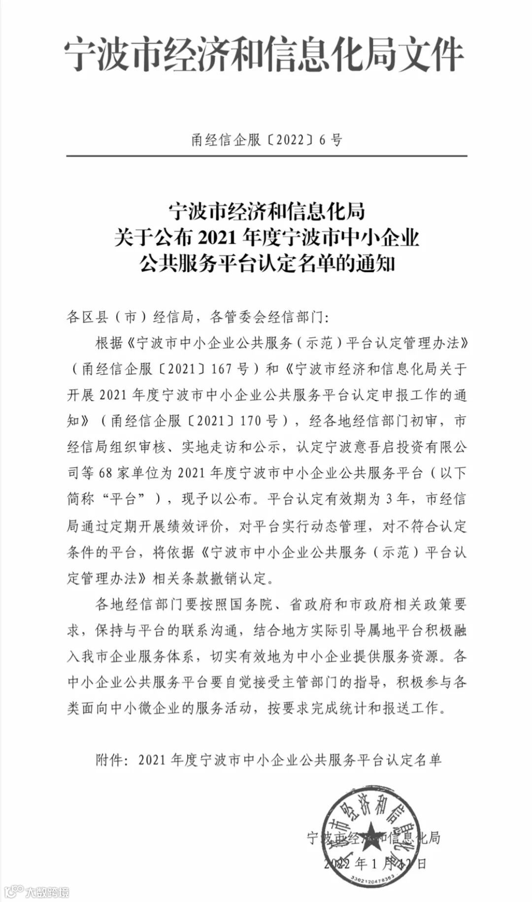 根据《宁波市中小企业公共服务(示范)平台认定管理办法》(甬经信企服〔2021〕167号)和《宁波市经济和信息化局关于开展2021年度宁波市中小企业公共服务平台认定申报工作的通知》(甬经信企服〔2021〕170号),浙江超链接科技发展有限公司荣获宁波市中小企业公共服务平台资质。未来,超链接平台将以需求为导向,为中小企业提供信息、技术、创业、培训、融资等公共服务,在管理、业绩、公信度、服务等方面具有示范带动作用。引导中小企业向专精特新发展,不断汇聚吉利内外部优势资源,打造集资本、创新、人才、数字化、宣传等服务型平台。