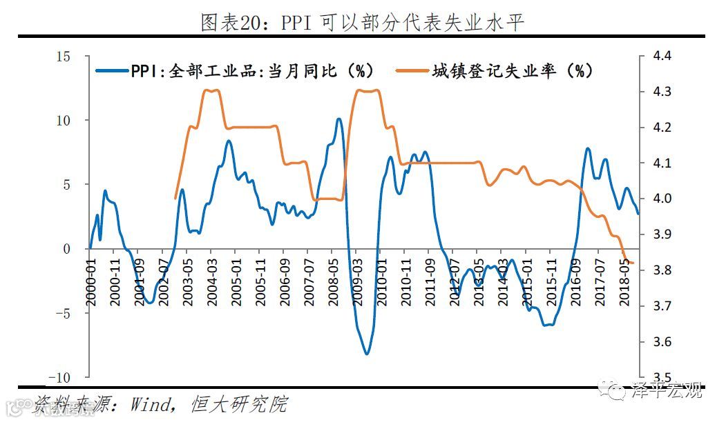 2)PPI与充分就业:在没有更完善的就业统计数据情况下,PPI也可以部分代表失业水平。PPI衡量的是工业企业的收入水平情况,其利润水平决定了该企业的招聘情况。另外,中上游企业很多是国企,平均解决就业人数远远高于民企。国企一旦盈利水平下降涉及到就业人数较多且容易爆发区域性、群体性事件,从而PPI可以部分代表我国就业水平。另外,PPI与财政收入也保持着高度的相关性。