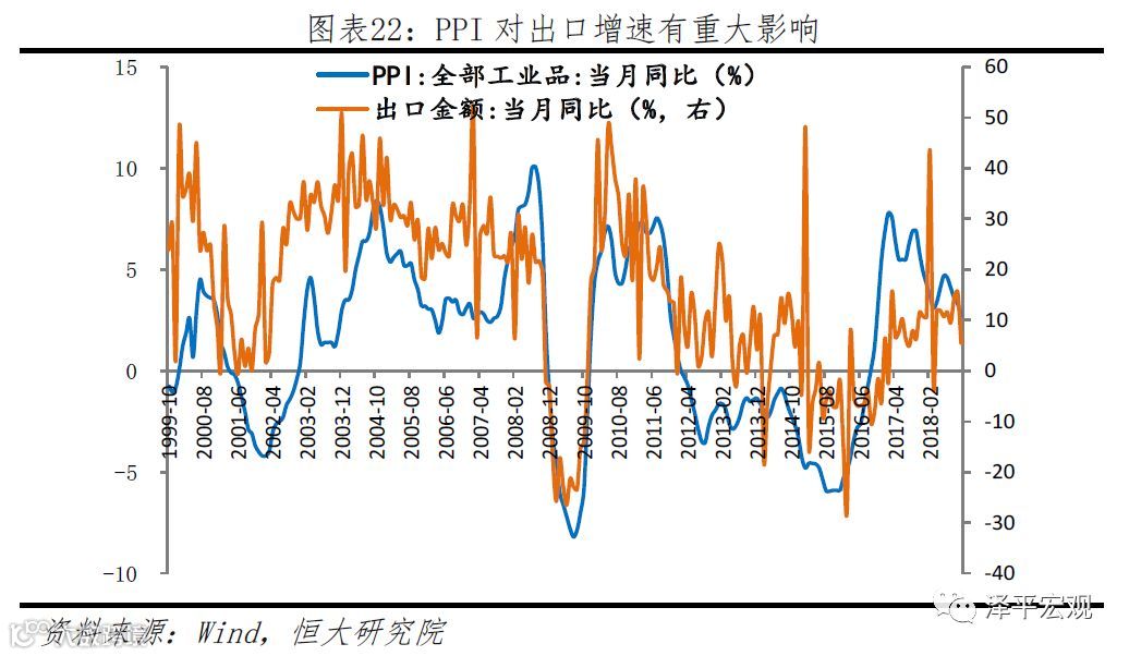 3)PPI与国际收支:PPI与出口增速有较好的同步关系,可以反映我国的国际收支情况。中国出口型企业是国企的市场,出口价格和PPI高度相关,商品价格的上涨会带来出口名义价值的复苏。是因为中国PPI的上涨,会带来商品价格的上涨和全球经济的复苏,从而增加了全球对中国出口的需求。