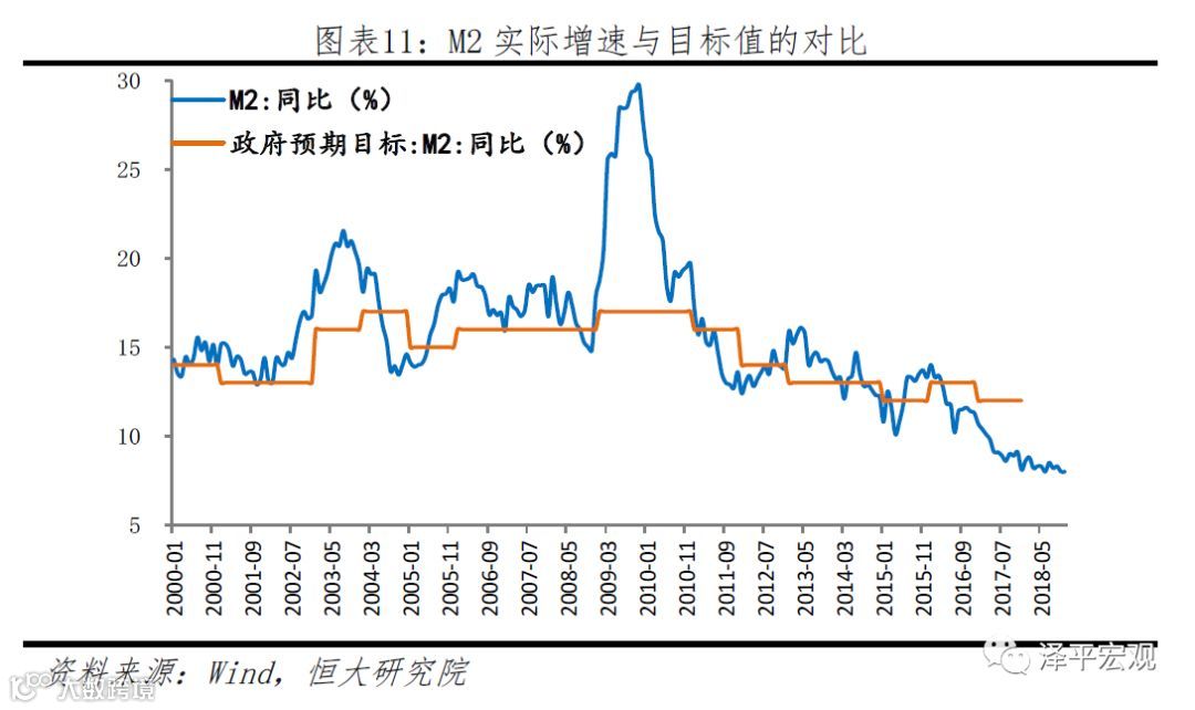 故在2018年政府工作报告中,政府并不像之前公布下一年的M2增速目标值,只是说要保持广义货币M2、信贷和社会融资规模合理增长。