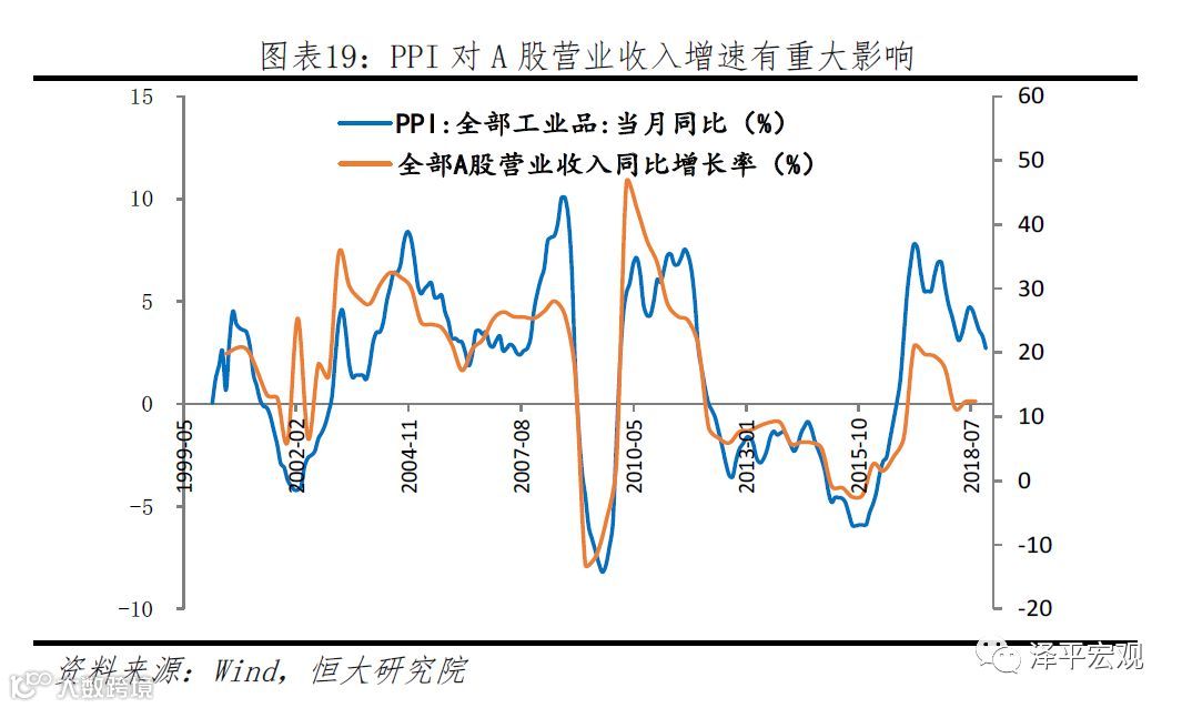 1)PPI与经济增长:PPI与工业企业利润、A股营业收入同向变化,可以较好的反映当前宏观经济情况。PPI衡量的是工业企业出厂价格变动情况,反映的是工业企业的收入,是工业企业利润的重要影响因素。而A股上市公司中中上游企业营业收入占比较高,PPI主要影响的是中上游企业营业收入,从而导致PPI与A股营业收入增速高度一致。另外,中国目前宏观经济仍受投资因素影响较大,PPI可以较好的反应投资情况,故PPI与经济增长密切相关。