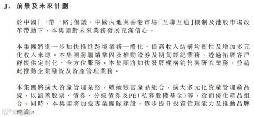 兴证国际对未来业务发展充满信心,公告显示,公司将进一步加快推进跨境业务一体化、提高收入结构均衡性及增加多元化收入来源;继续巩固及推动证券及期货经纪业务,透过拓展客户群提供定制化、全方位服务;加快发展机构销售与研究业务,并以此推动企业融资及资产管理业务。