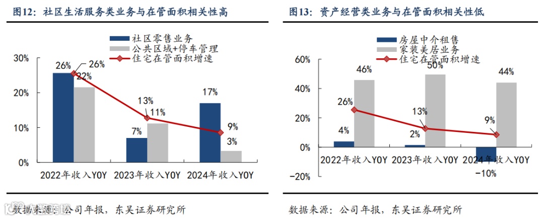2、资产经营服务类:包括上述第 5~6 类业务,即房屋中介租售+家装美居业务。分类的逻辑是这 2 类业务与房地产周期相关性更强,与在管面积的相关性较弱。