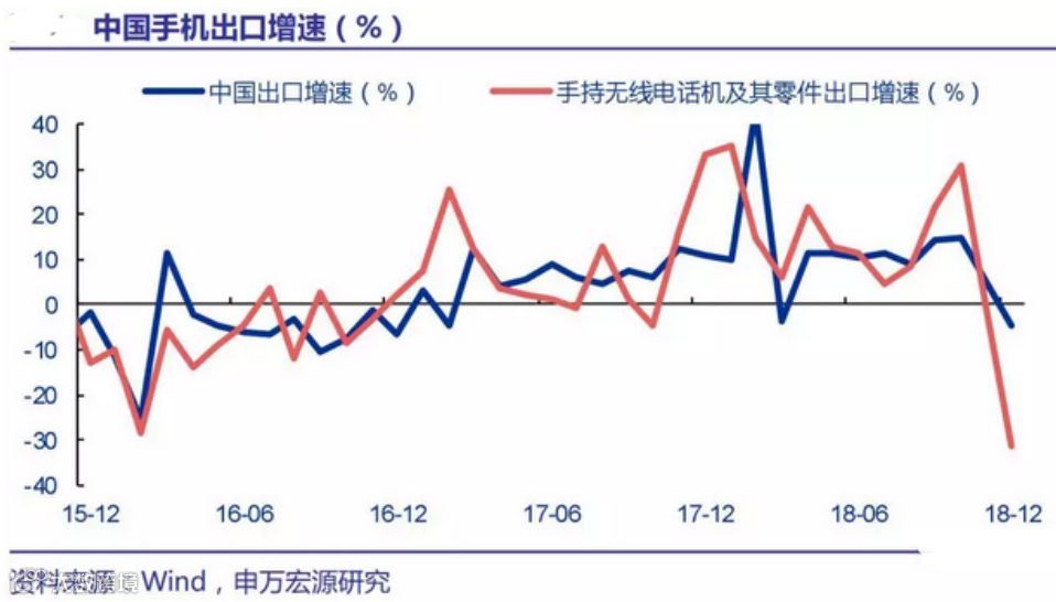 根据海关公布的主要出口商品规模,12月手机出口158.05亿美元,同比下滑达71.4亿美元,也就是说,12月单月出口下滑的幅度中,70%以上源于手机单项。