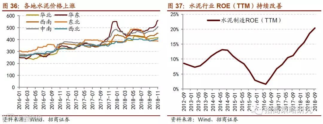 水泥制造子行业在2016、2017和2018年上半年均保持了100%以上的净利润增速,景气度延续时间超出预期,盈利能力大大改善;水泥行业ROE(TTM)连续八个季度持续提升,由2016年二季度的1.6%提升至目前的20.4%,盈利修复能力得到加强。
