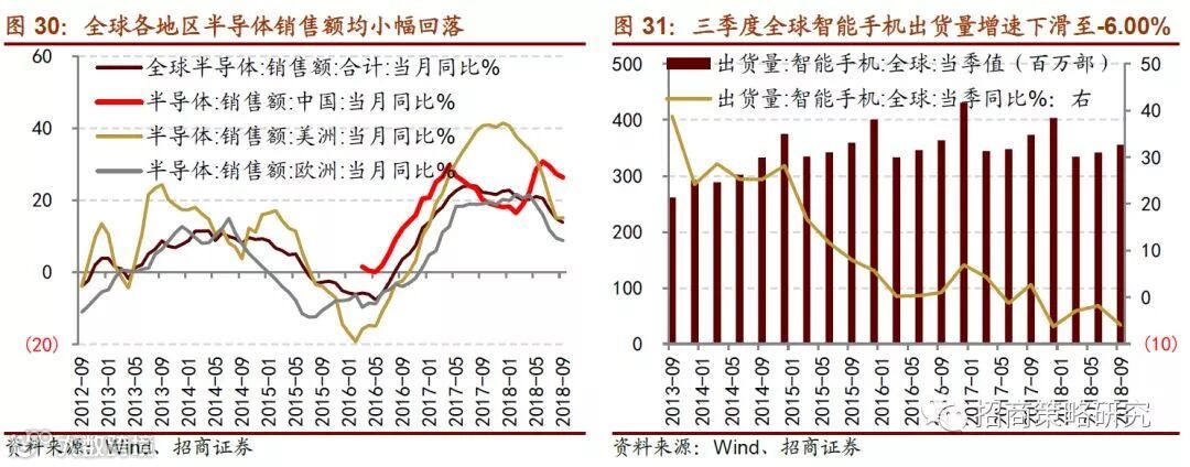 全球半导体销售额增长仍处高位,但同比增速持续放缓,预计未来行业增速或回落。受制于研发技术和产能建设等因素,短期国内中高端集成电路的需求仍维持依赖于进口的现况,但后期产能逐步投放和技术升级有望改善目前局面。全球智能手机出货量持续走弱,2018年三季度全球出货量较去年同期减少17.9百万台至355.20百万台,增速跌至6%。继9月苹果、华为等多家大型智能手机厂商发布新品后,10月换机潮明显下降,预计短期内全球智能手机出货量或小幅回落,后期5G商用可能引起大规模换机潮。