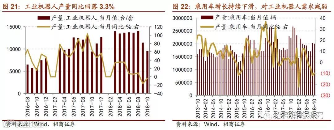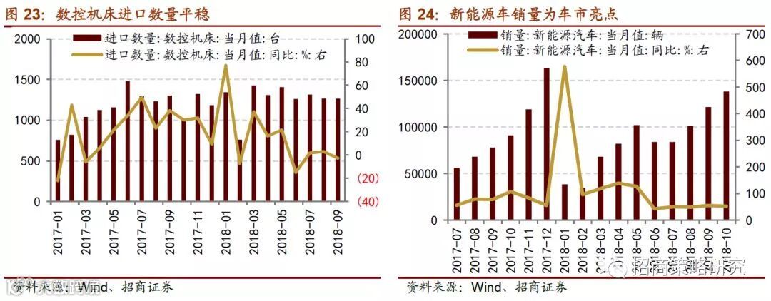智能装备方面,工业机器人和数控机床的需求持续放缓。乘用车产量放缓对于工业机器人需求造成较大的冲击,同时国产机器人市占率受到外资品牌的挤压,十月工业机器人的产量依然维持负增长,汽车产量下降以及整车厂生产线工业机器人普及率的提升都对于工业机器人的需求量大大减少。同时2017年外资品牌机器人加速流入国内市场,对于国产机器人的销量造成干扰。整体来看,2019年生产线对于自动化智能装备的需求表现疲弱。