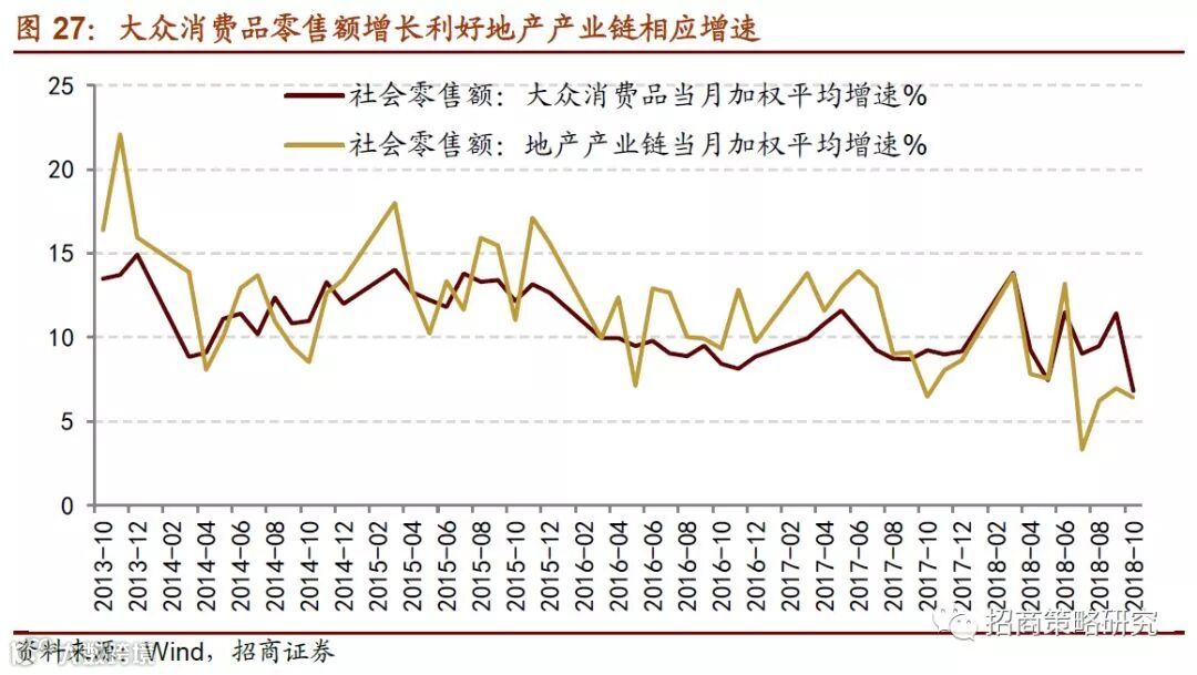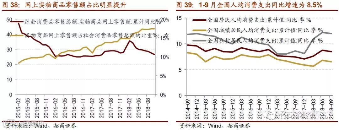 楼市调控趋于严格将进一步抑制地产产业链的相关消费(如空调和家具),而提高个人所得税起征点、个税专项附加扣除细则等政策密集发布将会刺激消费,增强居民对于大众品的消费意愿(如粮油食品、日用品、化妆品和服装纺织)。预计后续影响消费的因素主要集中在猪肉价格走弱、原油价格回调、地产后周期消费需求减弱。