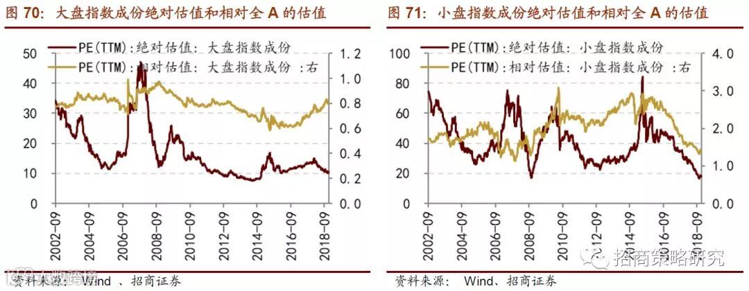 从相对全部A股估值的角度来看,小盘股的相对估值水平比大盘股降幅更大。陆股通开通以后,过去两年外资大量买入蓝筹股,蓝筹股相对小市值公司的折价不断降低。