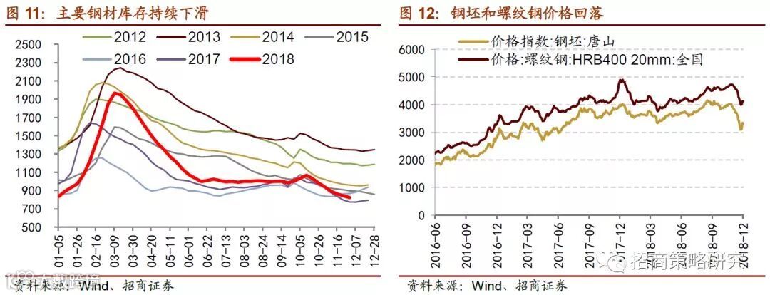 钢铁行业,预计2019年钢铁的海内外需求将有所下降,汽车等制造业的投资上行动力不足,房地产投资热度降低都对于钢铁的需求减弱;目前钢坯和螺纹钢价格都处于加速下行态势,吨钢毛利受损,明年钢材价格可能将下行至新的中枢。若行业兼并重组加速将会对于提升行业的表观业绩增速。