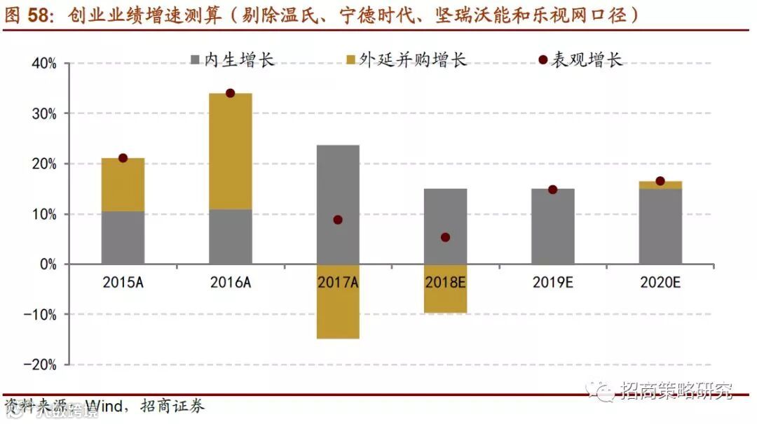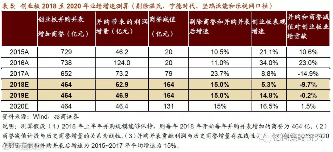 我们预计2018年创业板剔除温氏、宁德、坚瑞沃能、乐视网后的表观增速将会较2017年继续下滑,2019年开始,商誉减值对净利润增速的影响基本消除,2019年开始,创业板业绩增速迎来拐点。