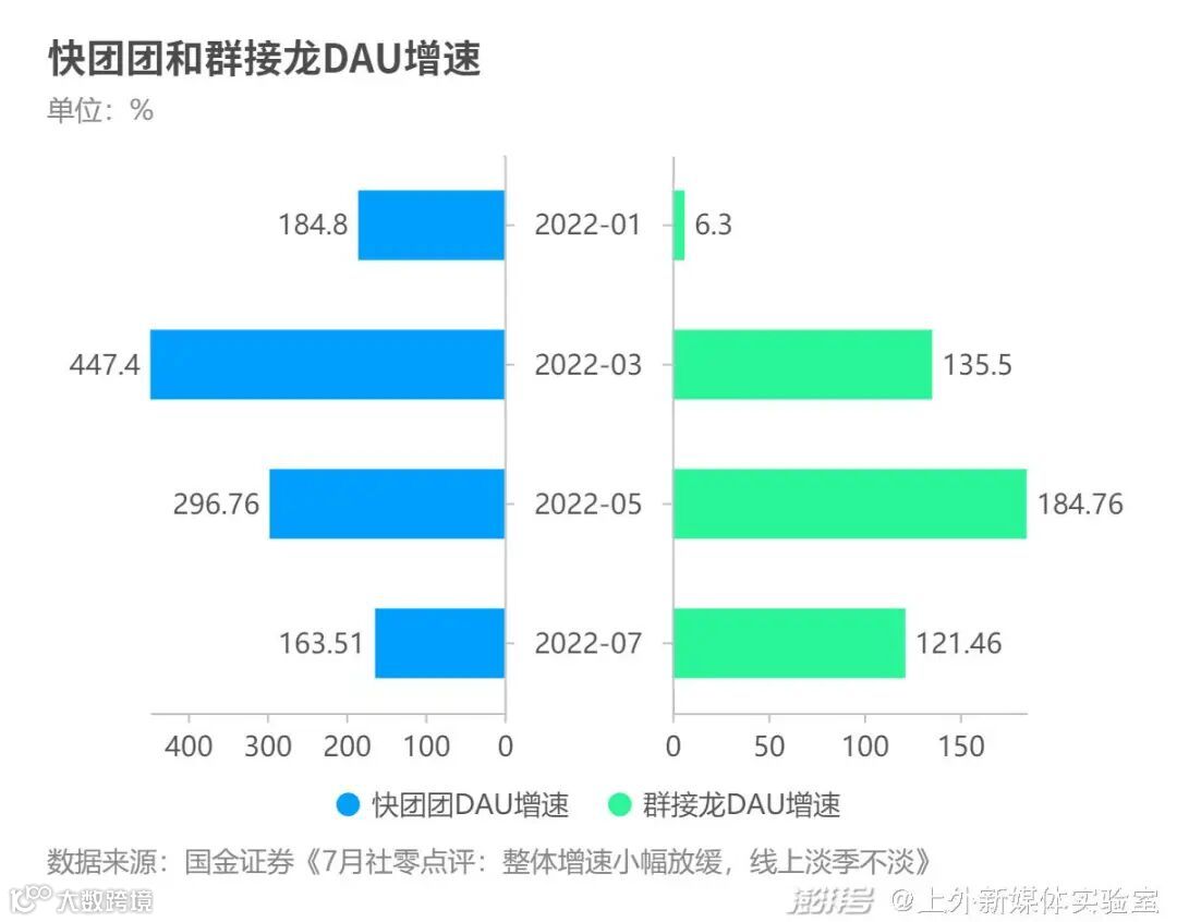 国金证券前段时间发布了一份公开报告:今年3到4月,社区团购工具快团团的日均活跃用户(DAU)增长了442%,群接龙涨了136%。