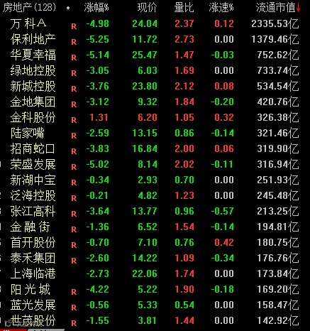今天,房地产板块全线大幅低开,保利地产、万科A、华夏幸福等房地产大盘股,跌幅一度逼近6%。