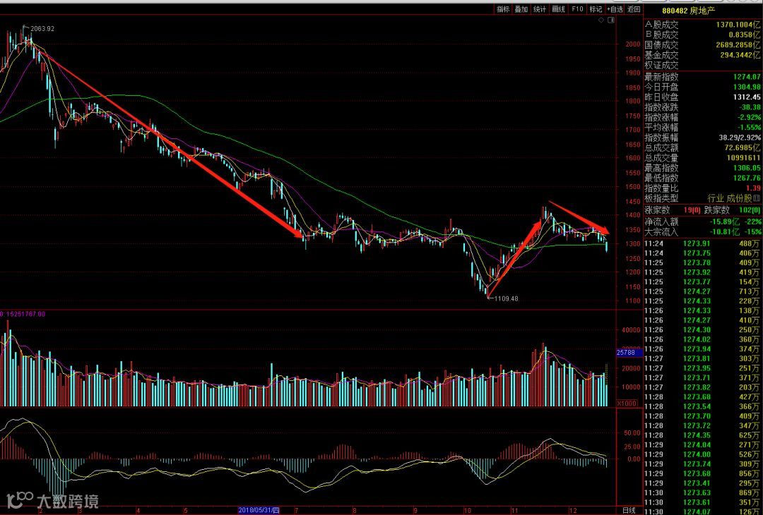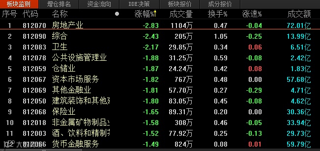 从跌幅来看,与保险板块一道,排名后两位,资金规模性净流出,保利地产、万科A一度跌幅近6%。今年以来房地产板块整体跌幅已经达到27%。同样在H股市场上,内房股也集体跳水。