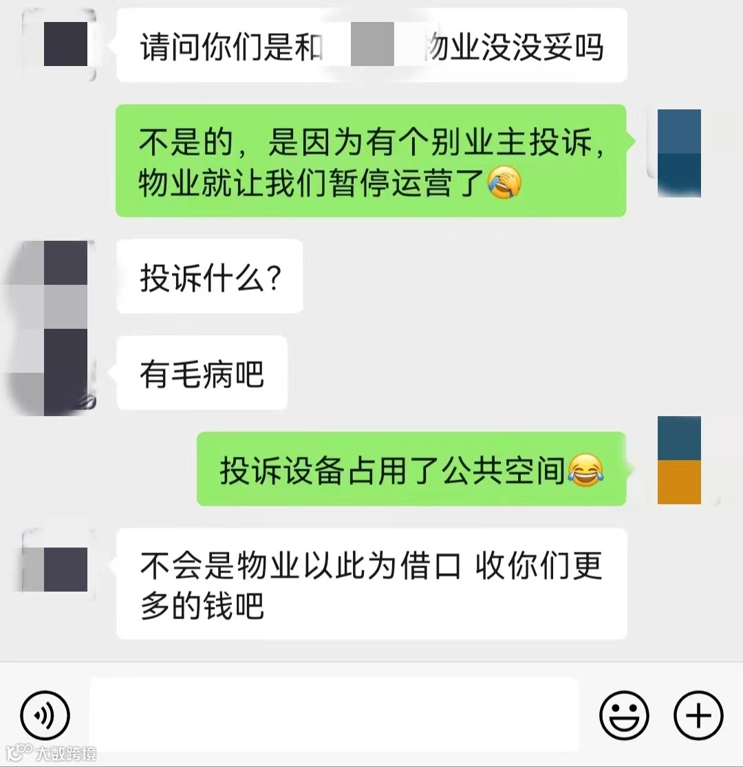 起初商家跟物业达成合作协议后,一切很顺利的就进场了,用户的接受度也很高,短短一周时间,就积累了500多个消费用户,大部分还是充值用户,而且都是活跃用户,都频繁使用商家的产品,然而,一周后,商家接到物业的通知,说是业委会不同意摆放,占了公共空间资源,需要撤场,后面,通过继续沟通后,业委会说是业主投诉,还投诉到了物业总部,最终,总体了解下来,并没有确定具体谁不同意,而是,互相踢皮球。