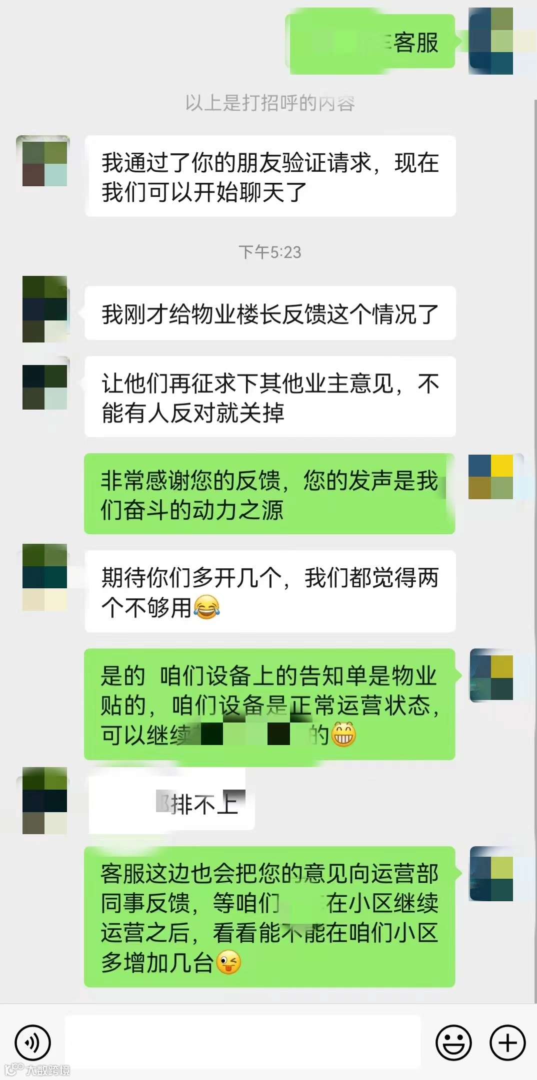 但是,有一个事实我们有必要搞清楚,其实每一个商家进小区都是为业主、为用户服务的,都是要赚钱的,并不是来搞破坏的,所以作为小区业主、用户的态度非常重要,为此商家在撤场之前跟用户做了回访: