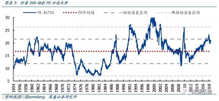 纵向对比来看,当前美股PE估值正处在1954年以来,平均PE向上一倍标准差附近,较前期底部已抬升2倍标准差,根据历史经验,历次牛熊期间PE估值变动基本不超过3倍标准差,美股估值抬升空间可能已经有限;