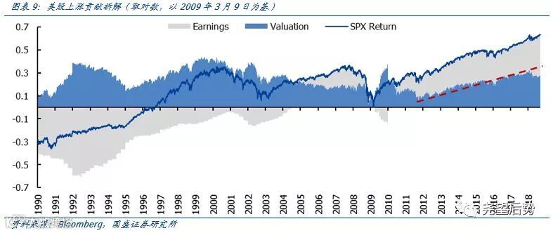2)10-13年危机影响渐消的盈利推动时期。2010年至2013年期间,随着经济逐渐走出衰退开始回暖,企业盈利快速上升,推动市场继续上涨并实现估值切换,奠定了此轮牛市涨幅近;